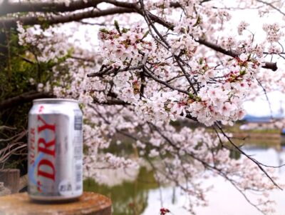 ひとり池のほとりに腰かけ読書しながらのビール・・・桜が咲いてなければ通報されるかもですね(笑