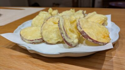 今回いただいたさつまいもは「はるか」と「あずま」、義兄いわく、「はるか」はねっとり系で焼き芋等にオススメ、「あずま」は天ぷら等に適しているとの事で、早速、天ぷらにしていただきました。
