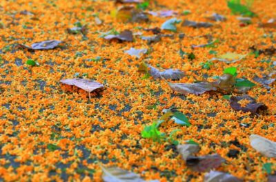 先日の雨で、かなり散ってしまいましたが、「オレンジの絨毯」がまた何とも言えない風情ですね。