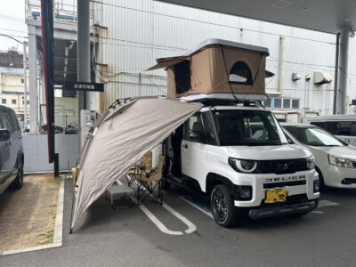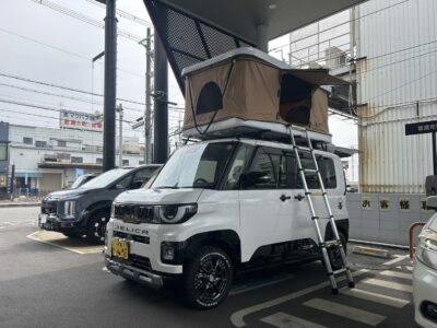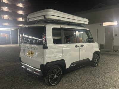 「デリカミニ」ターボ車で4駆、悪路でもパワフル走行が期待できそうなモデルですが、キャンピング