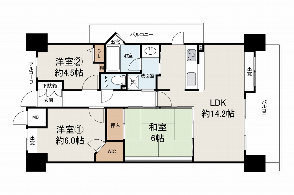 バルコニー面積 17.97㎡(南西向き・南東向き)