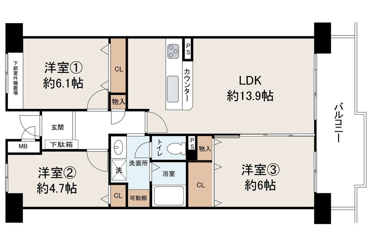 最上階の14階部分の3LDK!